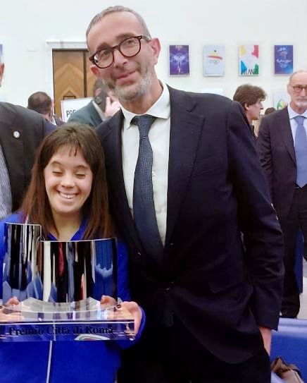 Sono stati consegnati nei giorni scorsi al salone d’onore del Coni i premi della undicesima edizione del “Città di Roma”. Molte delle eccellenze più grandi dello sport capitolino, delle istituzioni, dell’associazionismo e della cultura che hanno saputo e sanno distinguersi e determinare lustro per le categorie di appartenenza sono state chiamate a ricevere i fantastici riconoscimenti alla presenza del numero 1 del Coni, Giovanni Malagò, padrone di casa, e del presidente del Comitato italiano paralimpico, Luca Pancalli; organismi questi che da sempre riconoscono l’Opes (associazione di promozione sociale, ente di promozione sportiva ed ente di servizio civile universale), per l’appunto organizzatrice del premio. Tra le più apprezzate Arianna Sacripante, nostra amica e atleta paralimpica di nuoto artistico misto e inclusivo, la prima da quando è stato istituito il “Città di Roma” ad aver ricevuto l’onorificenza per la sua categoria. Definita simbolo di uno sport che rimuove le barriere, fisiche e non solo, Arianna, fulgido baluardo dell’ormai mitico Progetto Filippide, a dispetto di una possibile emozione, è stata invece molto decisa e precisa, quando ha ricevuto il prestigioso trofeo, nell’affermare: “Ringrazio l’OPES per questo Premio. Per me fare sport significa impegno e sorriso, dobbiamo raccontare una storia, quella che insieme a Giorgio Minisini costruiamo ogni giorno, e farla diventare sempre più importante”. In tal modo raccogliendo il prolungato applauso della folta platea.