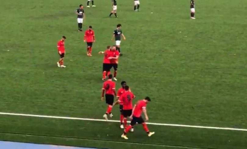 Gioia giocatori Aranova dopo goal di Monteforte con l’Ottavia